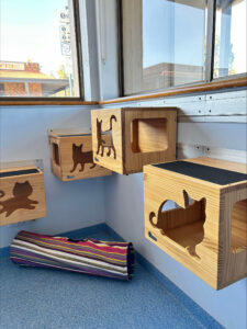 - Playroom: Cats also have access to a separate playroom with large windows, providing a bright and sunny space for them to explore, exercise, or simply nap in the warmth of the sun.