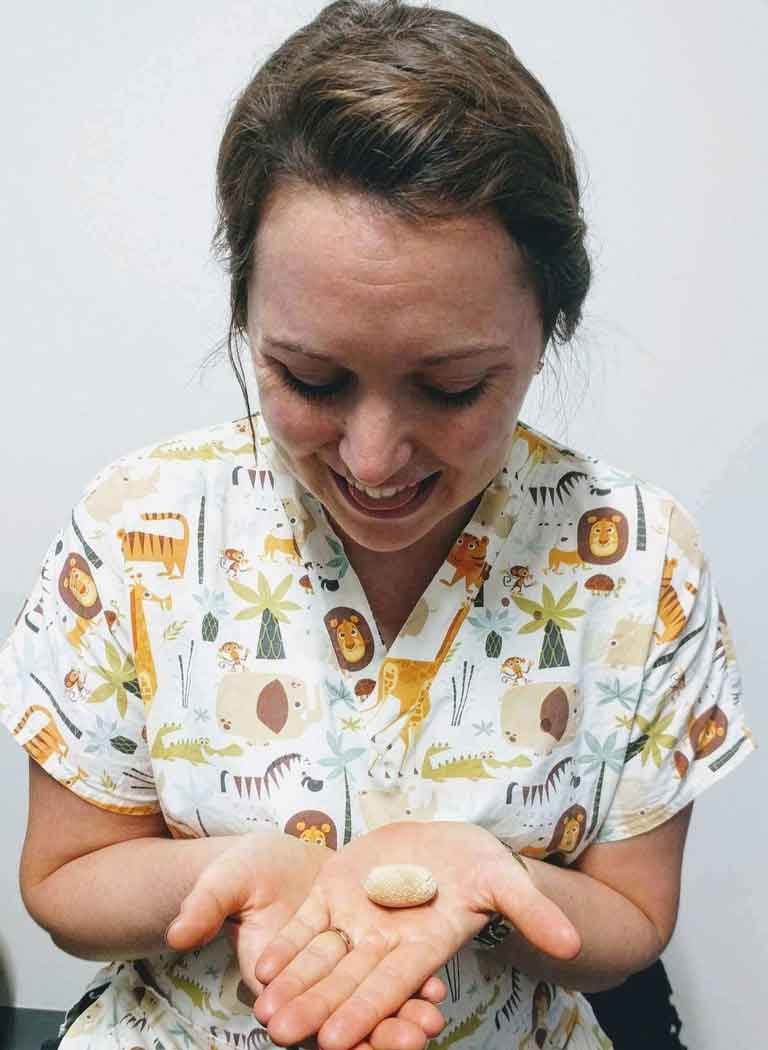 That’s right, what you’re looking at in this picture is a bladder stone! From all accounts, the presence of a stone in the urinary tract is a very uncomfortable condition (or downright painful, apparently). That’s exactly the situation we had to face with Emmy Lou, a little Westie we treated recently.